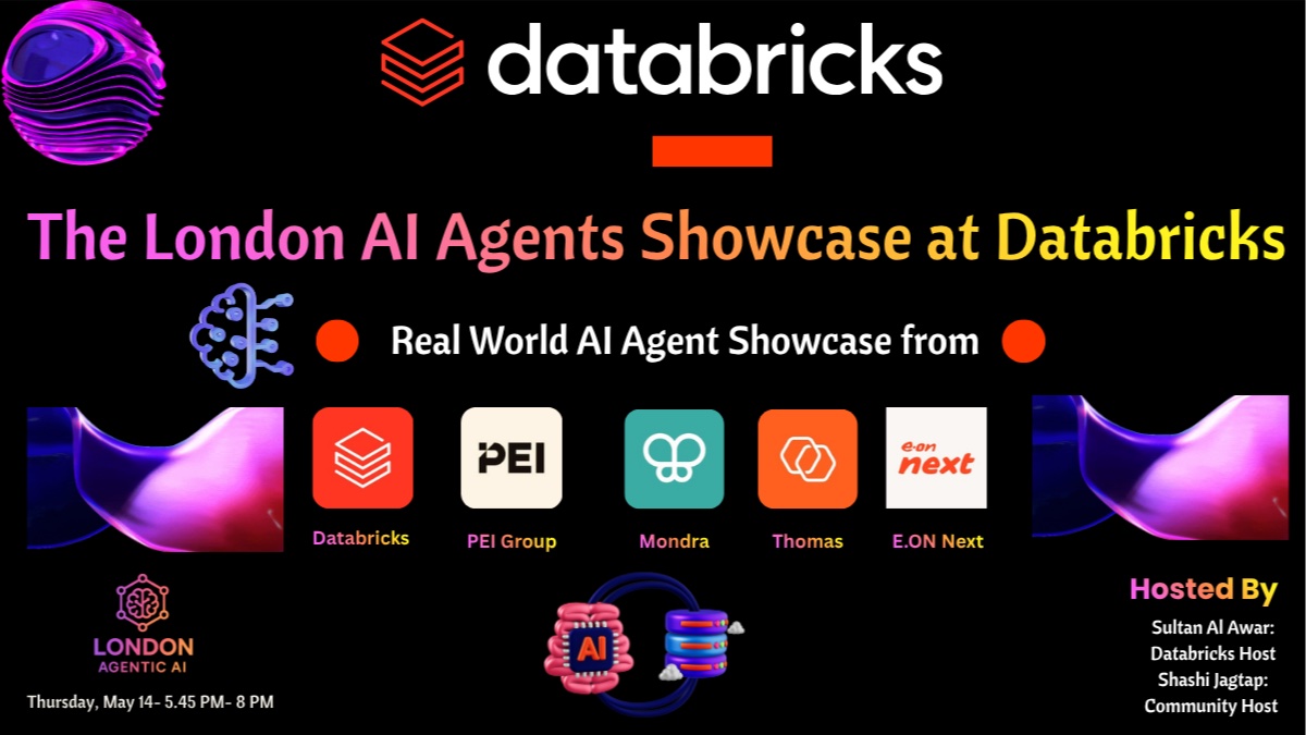 The next London Agentic AI event brings the community to Databricks London HQ for a showcase of real-world AI agent systems. The emphasis is working agents, not generic demos: how teams are using data platforms, retrieval, orchestration and applied AI to solve production problems.